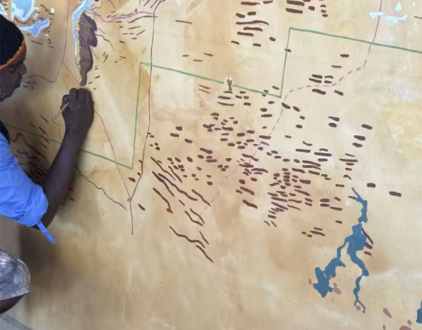 It is about developing a large hand-painted topographic maps that integrate both scientific information and local Indigenous and current land management knowledge.